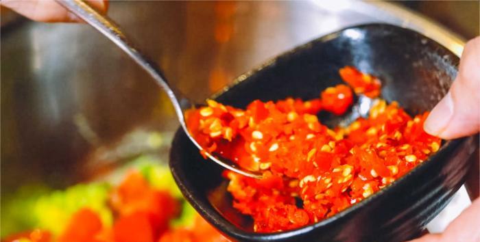 我們用新鮮辣椒切碎,這個時候辣椒可以選辣的或者是不辣的菜椒都可以,香菜切末,洋蔥切碎,如果不愛吃的可以不放哦。