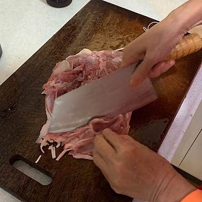 2 將雞腿較厚的部分用刀切一下,讓稍後捲成肉卷時比較好捲,也不會不美觀。