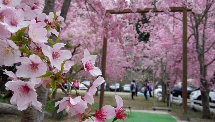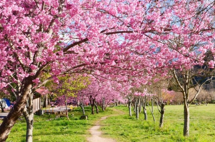 | 八重櫻 | 2月上旬 | 2月中 - 3月初 | 粉紅色,花瓣多重 | 部分農場、寺廟周邊 |