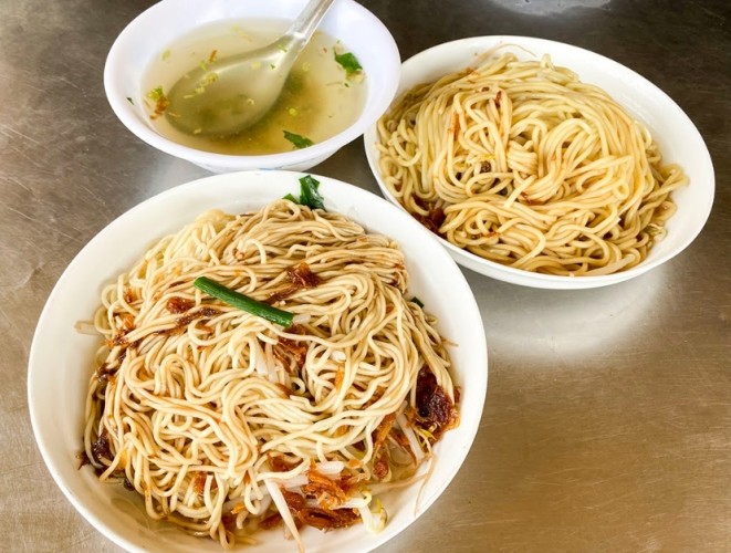 - 乾麵 (小碗): 油蔥酥香氣濃郁,豬油拌著細麵條,簡單樸實的古早味。早上想吃點有飽足感的,點這個配湯剛好。