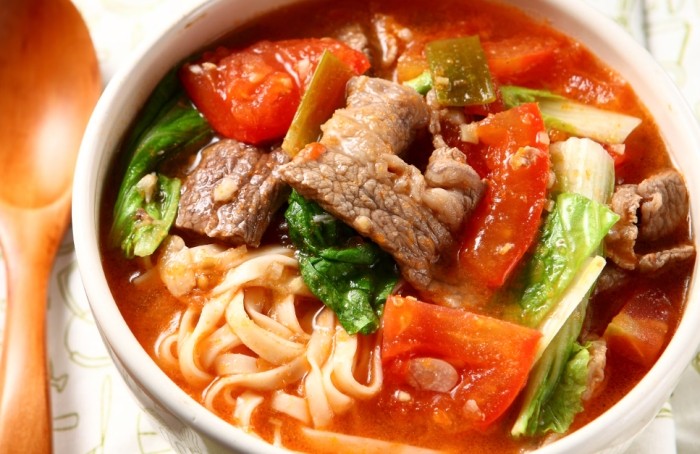 | 番茄牛肉麵專賣 | 新北市淡水區民族路31巷2號 | 番茄牛肉麵、清燉牛肉麵 | 新鮮番茄湯底,牛肉軟爛 |