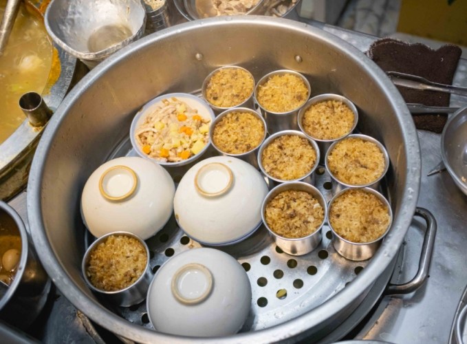 說到溪口的早餐,沒吃過這家的碗粿,別說你來過!他們家的碗粿,就是那種最傳統的滋味。米漿磨得細緻,蒸出來的口感是帶點Q彈的軟綿,重點是那靈魂醬料!鹹香的肉燥醬汁,加上一點蒜泥、一點店家的祕製醬油膏,最後撒上滿滿的菜脯碎。吃之前一定要用竹籤「ㄍㄨㄚˊ」成小塊,讓每一口粿都裹滿醬汁。裡面的豬肉塊和蛋黃也給得大方,吃起來就是一個爽快、實在。簡單,卻讓人念念不忘的古早味。我的最愛沒有之一!(上次連吃三天都不膩...)