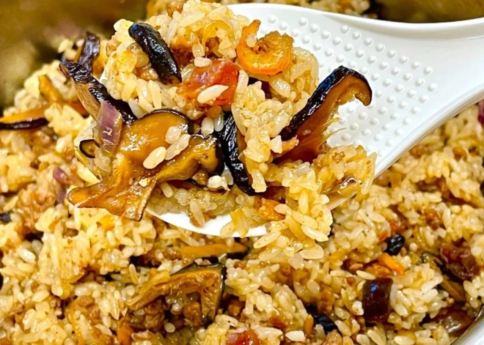 - 阿忠古早味油飯: 古早味油飯(大) + 肉羹湯 + 淋上甜辣醬