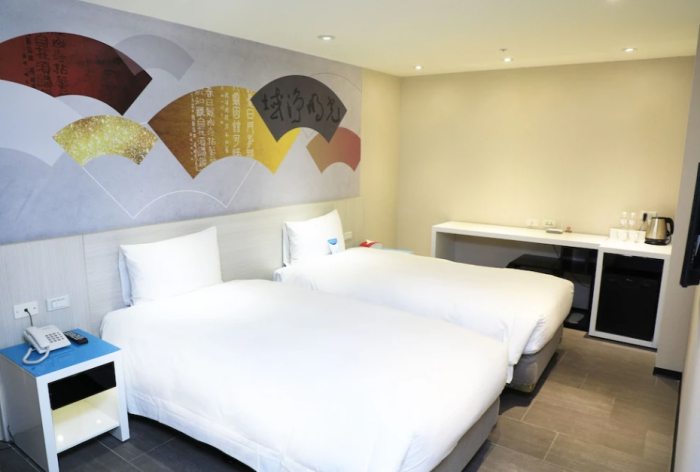 - 介紹: 這家很有特色!由富邦集團打造,融合商旅和健康概念。風格是清新的木質工業風,公共空間寬敞舒適,有書牆、免費咖啡茶水區,甚至還有個小型健身房!房間設計感強,採光好(建議選高樓層),備品質感不錯。主打環保與健康,例如提供瑜珈墊(可借回房)、空氣清淨機(部分房型)。隔音好,睡得很安穩。算是平價中帶點質感的選擇。