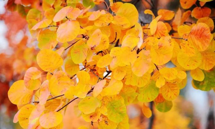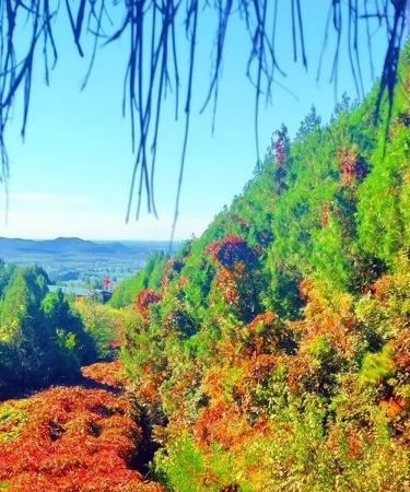 聖泉山的彩葉已經進入最佳觀賞期,楓樹、爬山虎、火炬、黃櫨、銀杏等10多個彩葉樹種相繼換上秋裝,色彩斑斕,與遠處的山峰交相輝映,共同繪製出一幅生動的秋日畫卷。