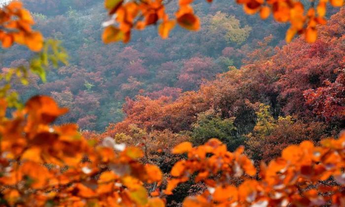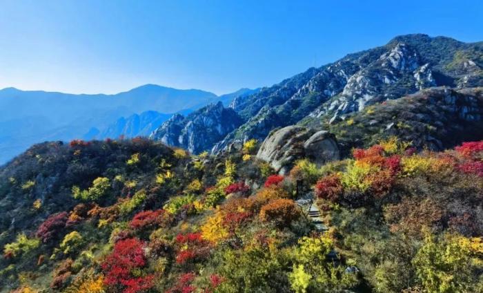 秋天的北京後花園萬山紅遍,層林盡染,遠眺色彩斑斕,近看紅葉如火炬燃燒,呈現出一幅瑰麗的畫卷。