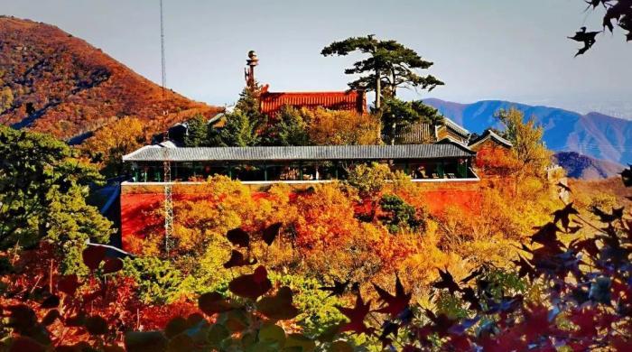 10月下旬正是觀賞妙峰山紅葉的最好時節,漫山遍野的紅葉把妙峰山層層包圍,染紅了峰巒起伏的層層崇山。紅葉的品種主要有元寶楓、黃櫨、山楂樹等,黃色的樹葉有落葉松、杏樹等。