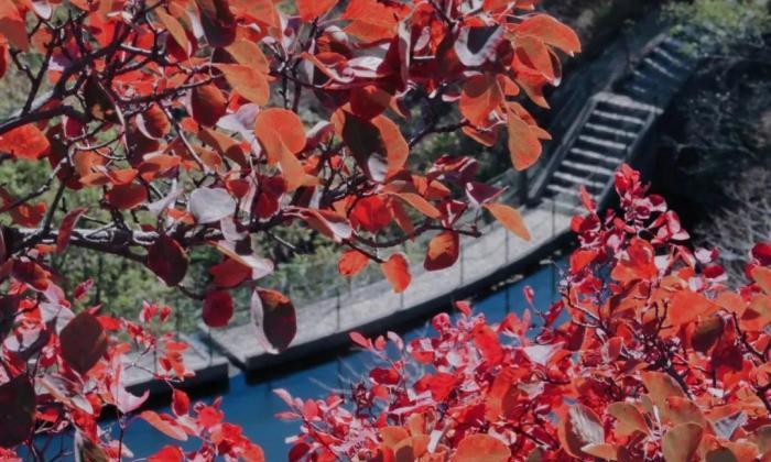 這裡紅葉景觀密集,每到深秋,層次分明的色彩呈現出斑斕的世界,從山下蔓延至山上的6000米石階步道,令遊客沉浸在漫山紅葉之中。