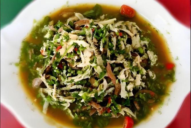 選用特定的樹皮(如樺樹皮或榕樹皮),剝下後反覆煮洗去除苦味,再切絲涼拌。口感脆嫩,類似海蜇或木耳,但帶著淡淡的木質清香。傈僳族喜歡加酸木瓜、辣椒、野芫荽涼拌,酸辣爽口,是下酒好菜。外地人一聽"樹皮"就退縮,但嘗過的人都說意外地上頭!