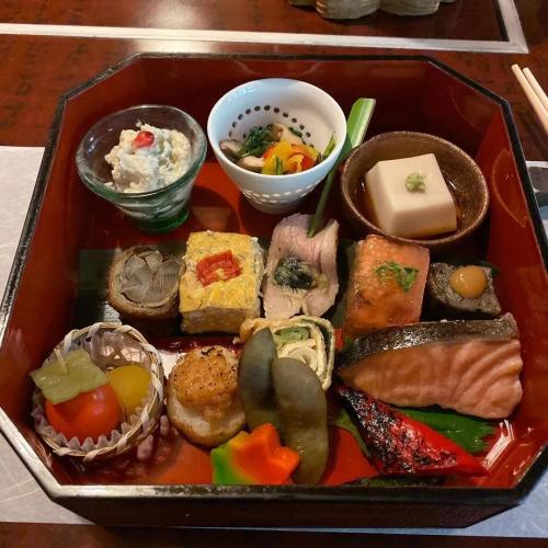造訪京都必吃的美食為嵯峨野的湯豆腐,其中尤以「松籟庵」的湯豆腐堪稱一絕。沿著嵐山的桂川不斷往深處前進,於前方擁有絕佳氣氛的建築物內,一邊欣賞四季分明的景色,一邊品嚐美味的豆腐懷石料理非常有名。晚餐時段的最低價格為7,500日幣,價位稍高,所以於此享用午膳的遊客也非常多。