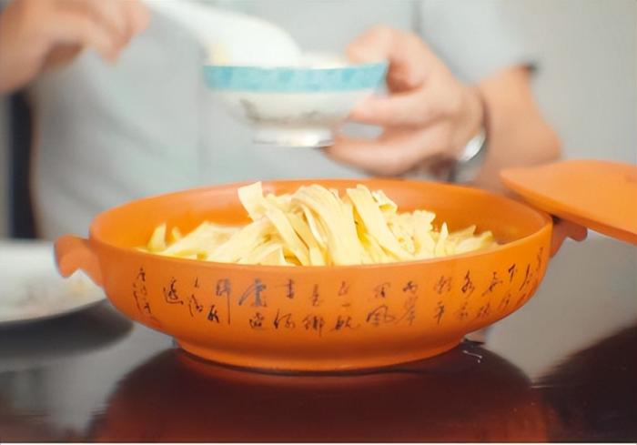高安上湯腐竹以傳統工藝加工製作的優質腐竹為主料,冷水泡發數小時,以農家散養土豬五花肉為輔料,以熬製高湯燜煮帶湯上菜。