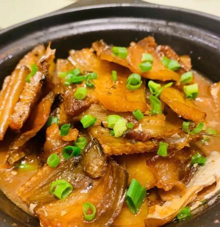 推薦理由:風乾的黃魚鯗與五花肉同燉,魚肉鹹香滲入肉脂,豬肉的油潤反哺魚乾的乾柴,成就一鍋「山海交融」的濃香。