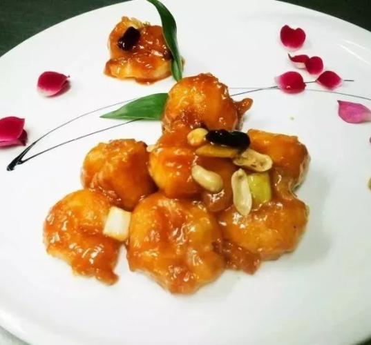 在宮保蝦球的基礎上做了一點改良。掛脆漿炸制。